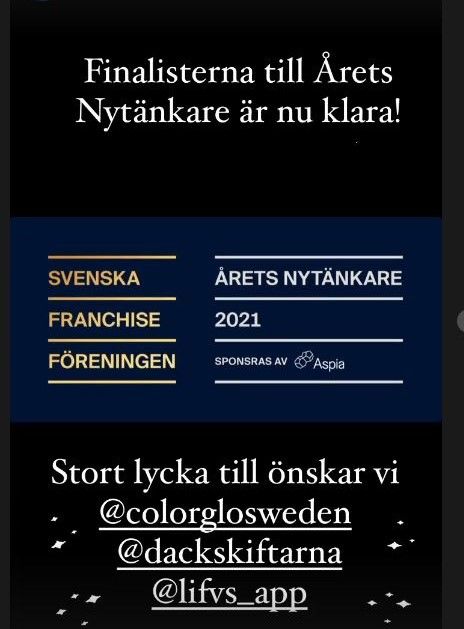 ColorGlo har chansen att bli årets Nytänkare inom Svensk Franchise. Utmärkelsen delas ut till d